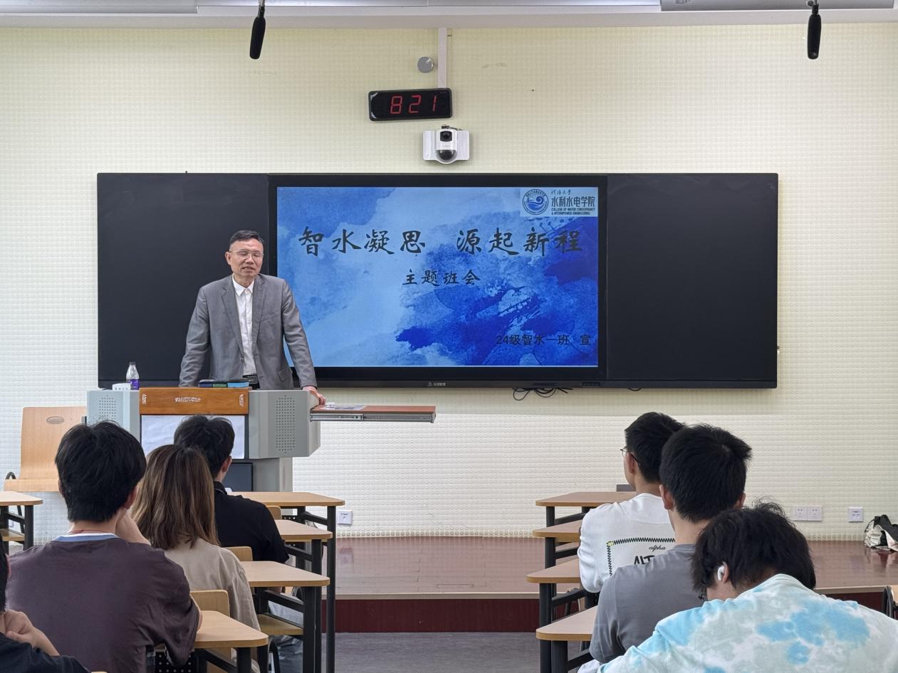 为深化专业认知、凝聚班级力量,av漫画 2024级智水一班与智水二班于av漫画 江宁校区开展主题班会。淮河水利委员会水文局原局长钱名开、av漫画 党委宣传部部长魏有兴出席并讲话,智慧水利系主任、智水二班班导师许栋、智水一班班导师朱延涛、辅导员笪步源及班级全体学生参与,班会通过经验分享与互动交流,共话成长方向。