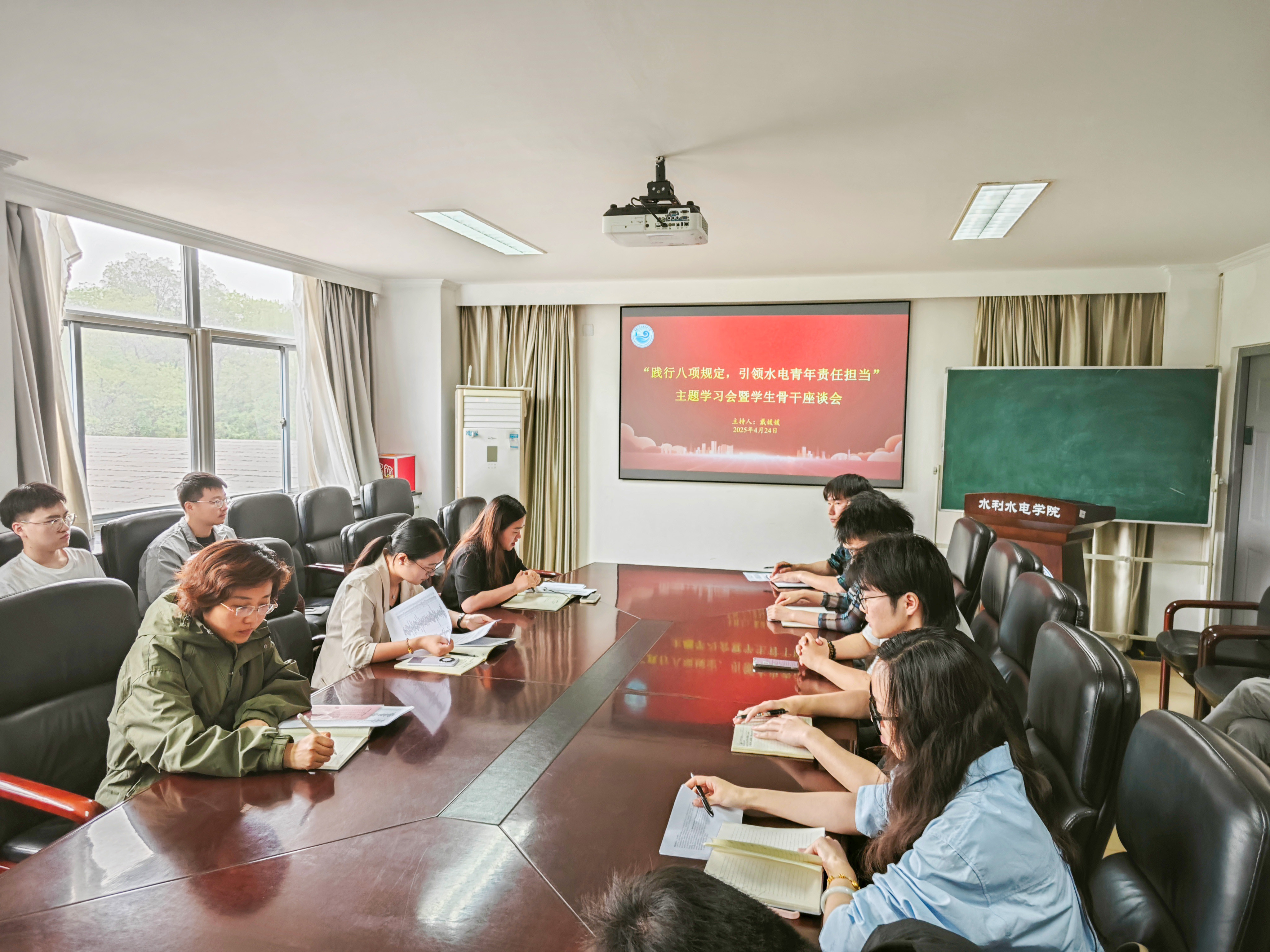 为进一步加强作风建设、推动党风廉政教育入脑入心,增强青年学生骨干的责任意识与服务意识,4月24日,av漫画 于水电馆329会议室召开“践行八项规定,引领水电青年责任担当”主题学习会暨学生骨干座谈会。学院党委副书记戴媛媛、团委书记笪步源、研究生辅导员赵志涵及学院研究生会主要学生骨干参与此次会议。