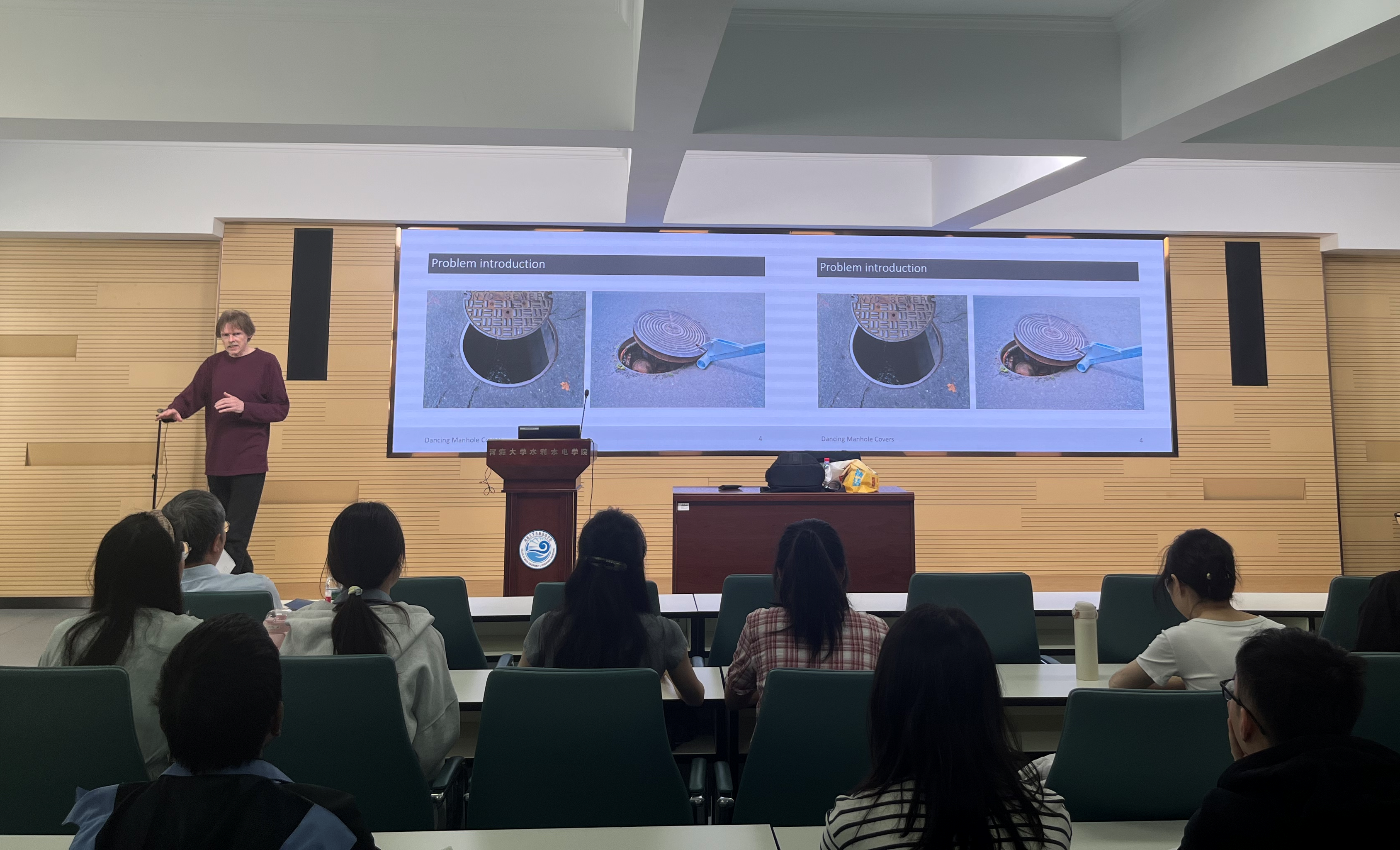 为拓宽学术视野,加强学术交流,av漫画 于5月6日成功举办“百十学术”校庆系列活动之“井盖跳动现象:动力学建模与数值模拟研究”学术讲座,特别邀请埃因霍温理工大学数学与计算机科学系副教授Arris S Tijsseling作为主讲人。本次活动吸引了众多师生前来参与,现场座无虚席,学术氛围浓厚。会议由周建旭教授主持。