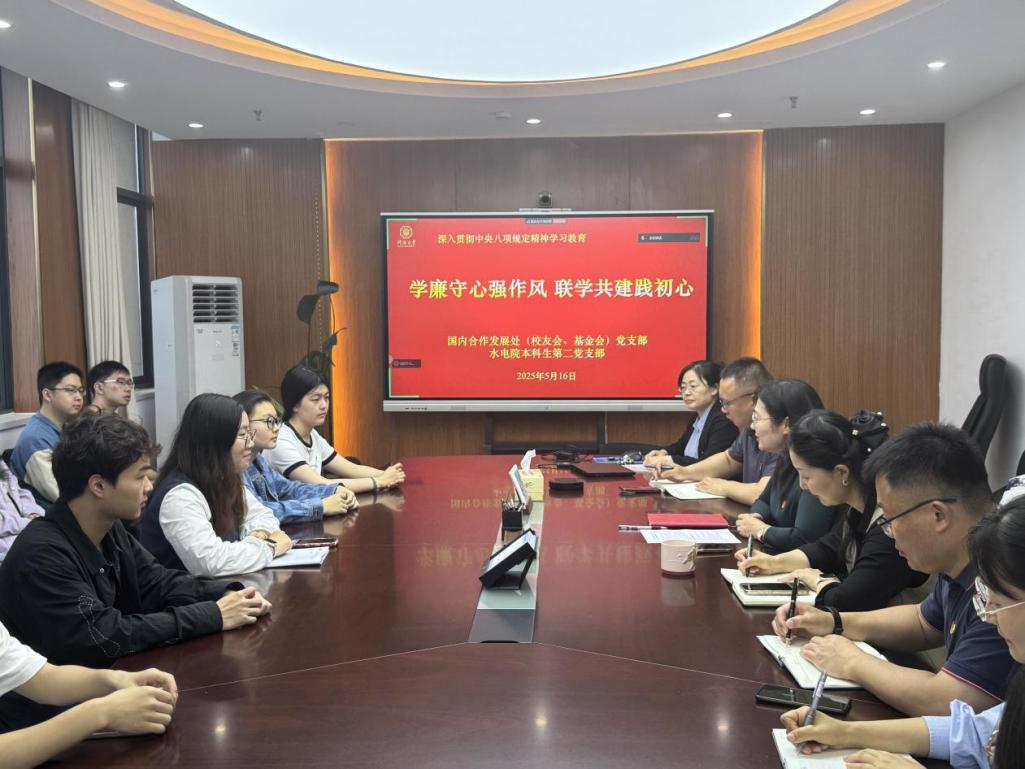 为深入贯彻中央八项规定精神学习教育, 5月16日,av漫画 本科生第二党支部与国内合作发展处(校友会、基金会)党支部联学联建,共同开展“学廉守心强作风,联学共建践初心”主题党日活动。党日活动以“理论学”与“实地走”相结合形式开展,分为支部书记讲党课和赴南京溪田勤廉教育基地参观学习两个部分。av漫画 国内合作发展处(校友会、基金会)党支部书记赵冰、av漫画 水利水电学院本科生第二党支部书记帅雨婷、两支部党员代表参与。