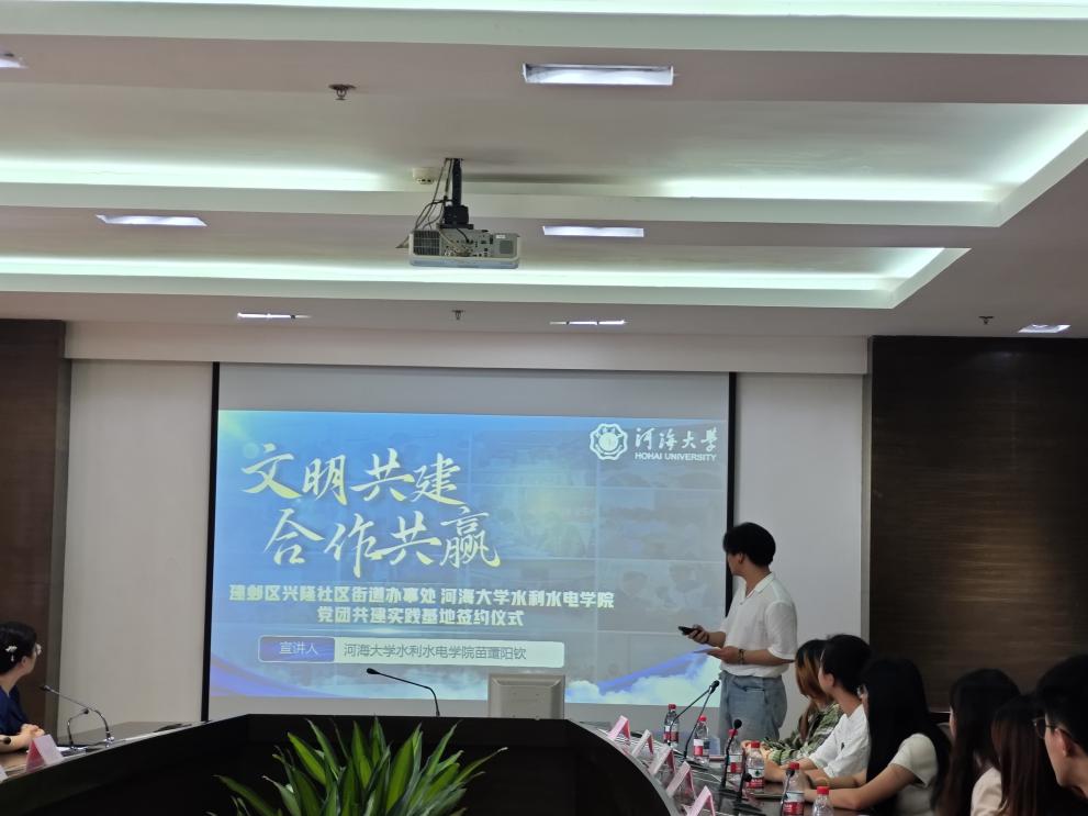 签约仪式以“合作共建党团共建实践基地”为主题,建邺区兴隆街道副主任孙如凤、av漫画 团委书记笪步源等双方代表出席。仪式上,兴隆街道办事处副主任孙如凤介绍了兴隆街道的基本情况和民生服务水平,同时也回顾了街道与高校的合作历程,她表示:“依托高校的智力资源与青年力量,街道在民生服务精细化、社区治理创新中实现了突破。”av漫画 团委书记、本科生第三党支部笪步源介绍了av漫画 以及av漫画 的基本情况,结合党建引领、团建赋能、水利特色的品牌项目,就此次校地合作交流提出新的想法和思考。她强调:“基地共建是深化产教融合的重要载体,学院团委和本科生第三党支部将以专业优势赋能基层发展,培养兼具理论素养与实践能力的青年人才。”