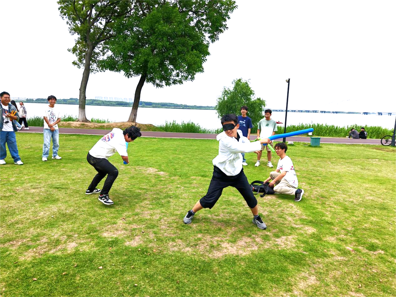 点豆竞巧手,挥剑试锋芒。在“筷乐红豆”环节,同学们用圆珠笔芯的笔尖将红豆在各个碗中转移,于细微处见真章,在精准中显功夫;“盲人剑客”挑战中,同学们蒙眼对决,在各自指挥官的指导下寻找对手发起攻击,虽前路未知,但同学们彼此信任、敢于亮剑。