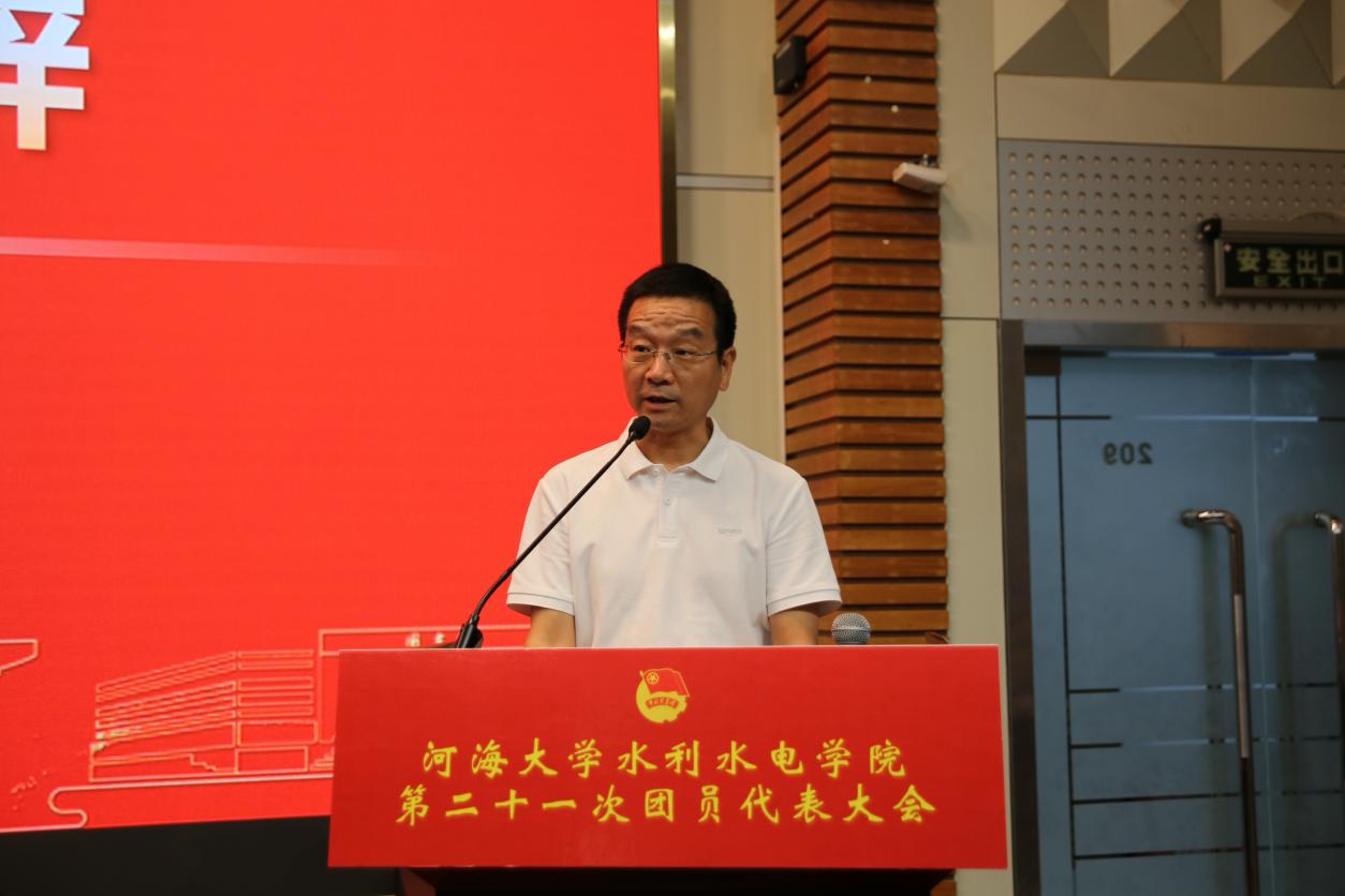 院团委书记笪步源代表学院团委作题为《凝心聚力担使命,奋楫扬帆启新程,为培育新时代水利英才贡献青春力量》的工作报告。报告以“守正创新强根基,服务大局显担当”“踔厉奋发启新程,勇毅前行谱华章”两大板块,系统总结上一年度团委在思想引领、社会实践、校园文化、创新创业等领域的工作成效,同时围绕团结引领团员青年建功新时代,从强化政治引领、深化品牌建设、优化服务体系等方面作出展望与号召。