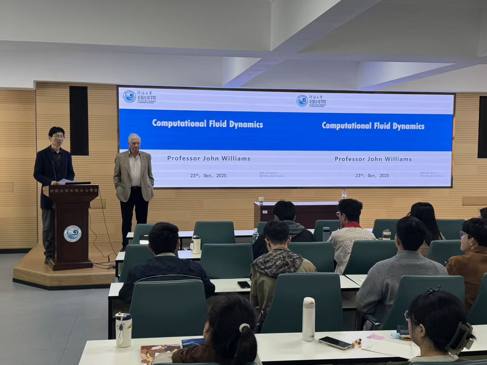 10月23日上午,英国伦敦大学玛丽皇后学院Williams教授应水利部水循环与水动力系统重点实验室邀请访问av漫画 ,开展系列学术交流。报告会由av漫画 许栋教授主持,av漫画 、港口海岸与近海工程学院、海洋学院、力学与材料学院相关老师和学生参加交流。Williams教授应邀做了题目为“Computational Fluid Dynamics: the Basics with Applications”的学术报告。报告会主要介绍了计算流体力学的基本原理,控制方程特征和数值求解方法,受到参会老师和同学的热烈欢迎。