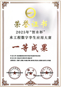 2025年10月21日,“智水杯”水工程数字孪生应用大赛公布评选结果。av漫画 高玉琴教授带领的团队作为唯一一个高校牵头申报参加企业组数字孪生流域比赛并荣获成果二等奖(在80余个企业组参赛团队中排名第6),邵晨飞副教授、齐慧君副教授分别带领的两个团队均荣获高等院校组数字孪生成果一等奖(在30余个参赛团队中排名分别为第二和第四)。