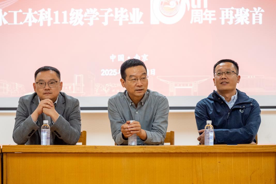 副院长赵兰浩细数校友们十年成长,言语间满是作为师长的欣慰与自豪,期盼未来与校友们在学科建设、人才培养等领域深化合作,共促学院与行业发展。副院长俞晓东介绍了学院近年来新建的智慧水利、安全工程专业,强调水电人在新时代的责任与担当,以及学院在行业发展中的引领作用。时任副书记戴玉珍回顾了同学们在校期间的历历往事,表达了对校友们在行业内拼搏奋进的殷切期待,希望大家始终坚守水利人的初心,常回家看看。