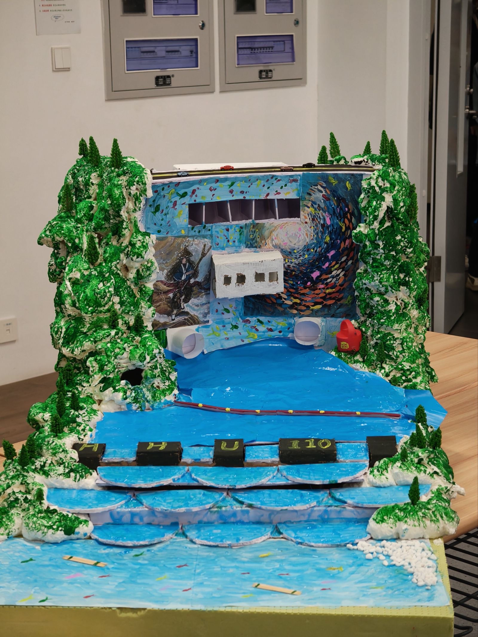比赛现场,各参赛队按抽签顺序依次进行答辩。他们不仅展示了精心制作的实体大坝模型,还通过PPT、三维建模和动画等多种形式,详尽阐述了设计理念、制作工艺、结构原理与创新之处。作品类型涵盖重力坝、支墩坝等多种坝型,许多团队更在设计中巧妙融入中华传统元素,其中极具想象和创新思维的小队还大胆尝试创作了我国最新水利工程雅砻江水电站的模型,实现了水利工程,艺术美学和大胆创新的有机结合。