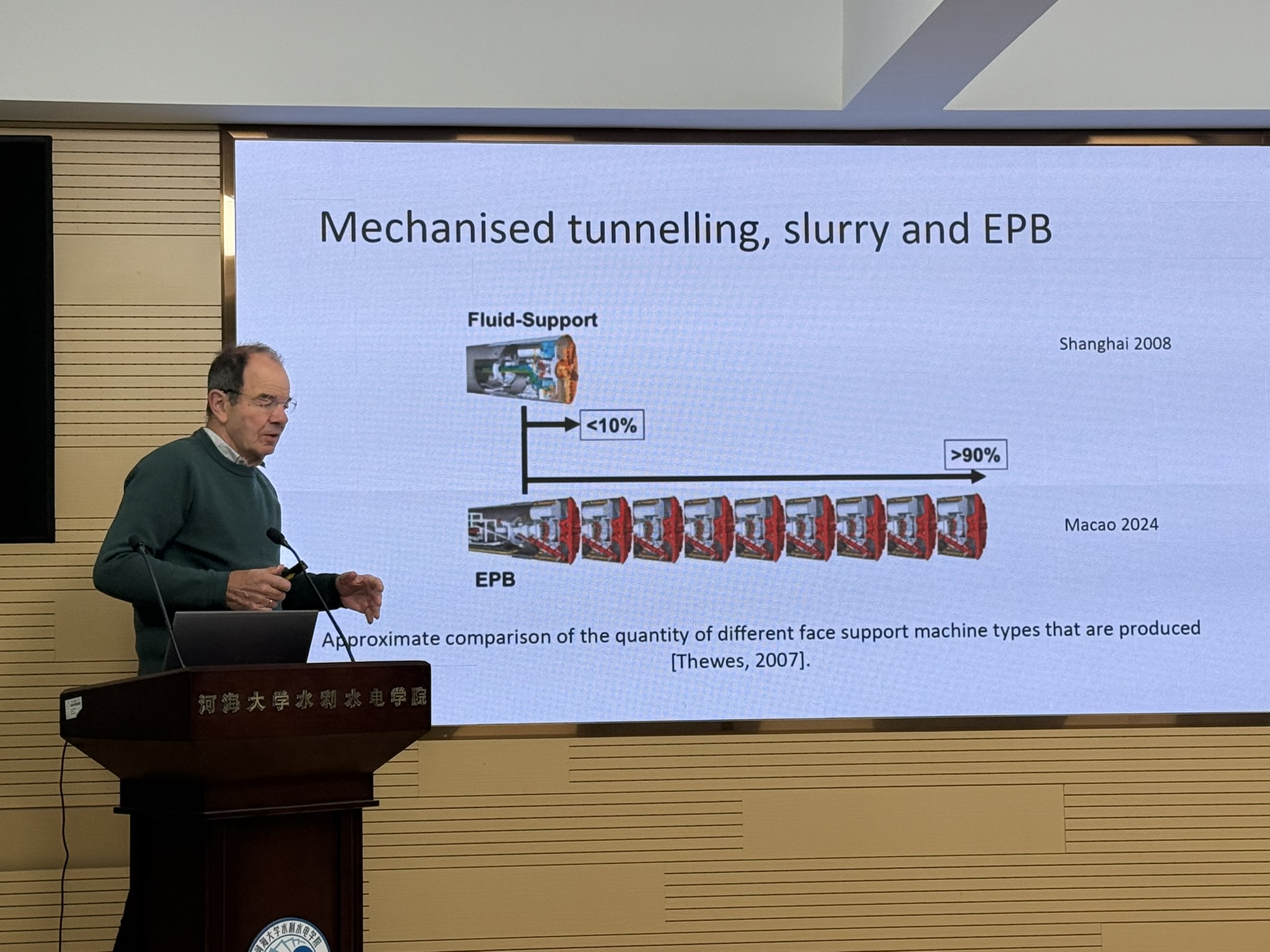 20251119日上午,学院在水电馆301会议室成功举办学术研讨会。应王媛教授邀请,比利时根特大学Adam Bezuijen教授访问av漫画 ,并作了题为“砂土地层盾构掘进掌子面相互作用机制”的学术报告。本次报告旨在深化对复杂砂土地层中盾构掘进机理的认识,揭示“土体-盾构-地下水-泡沫”相互作用机制,为盾构掌子面精细化控制及施工安全风险防控提供科学依据和技术支撑。