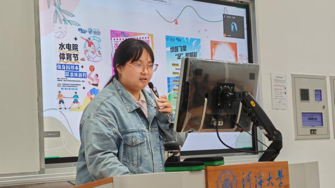 体育部闫金铭同学在汇报中详细阐述了部门本学年的工作重点与成效。体育部不仅为学院参与院校系列赛事提供坚实的组织、后勤保障,也为同学们举办了游泳、力量举等多项体育活动,推动学院体育文化的建设与推广。