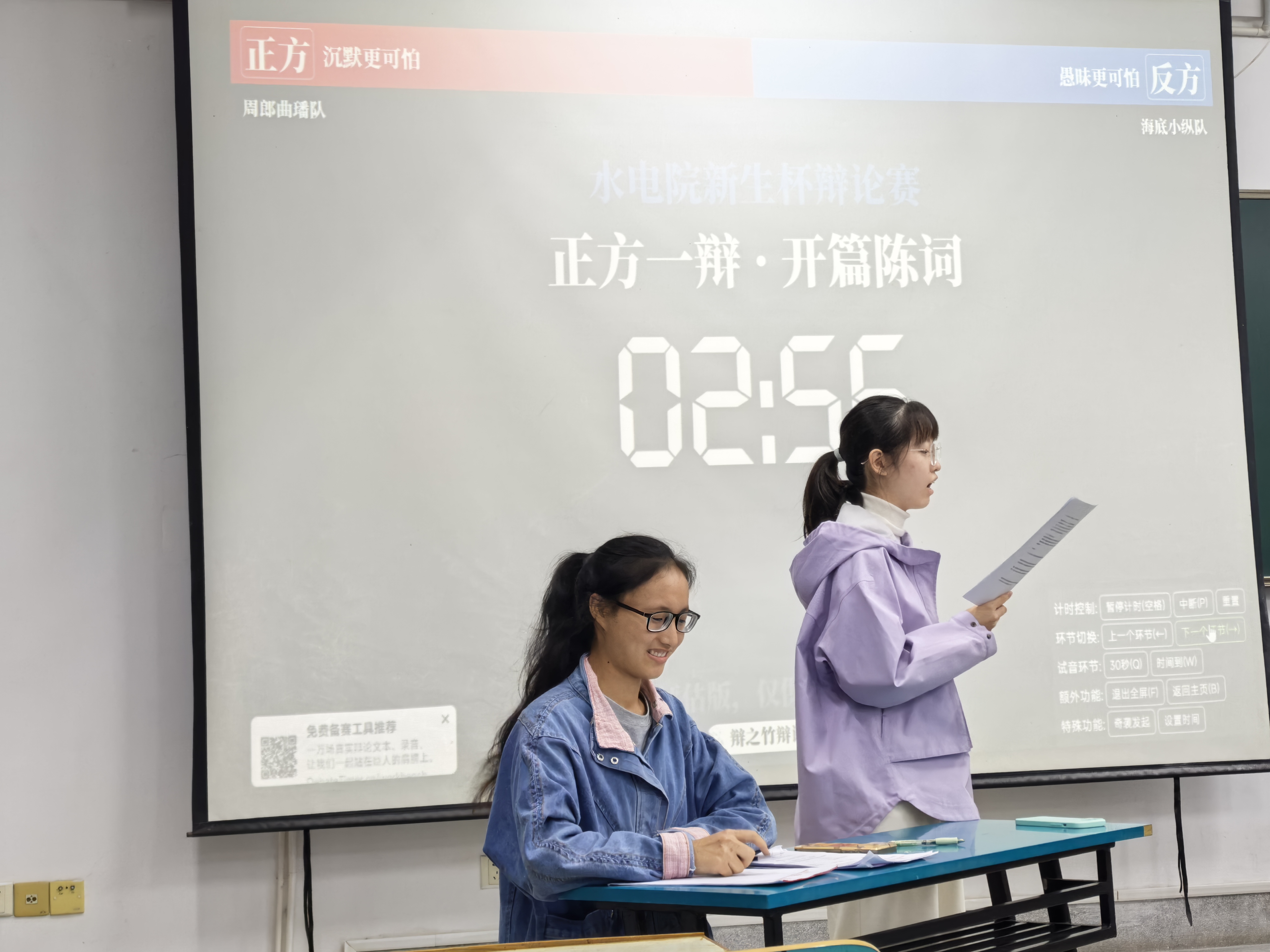 “唇枪舌战,刻印思维锋芒;妙语连珠,尽显青春风采。”2025年11月15日,2025年水电院“新生杯”辩论赛决赛在江宁会议中心隆重举行。正方同沐月难安队与反方死亡圆周率队围绕“明月高悬不独照我更痛苦/独不照我更痛苦”这一共情性与思想性兼具的辩题展开交锋,角逐最终的胜利。