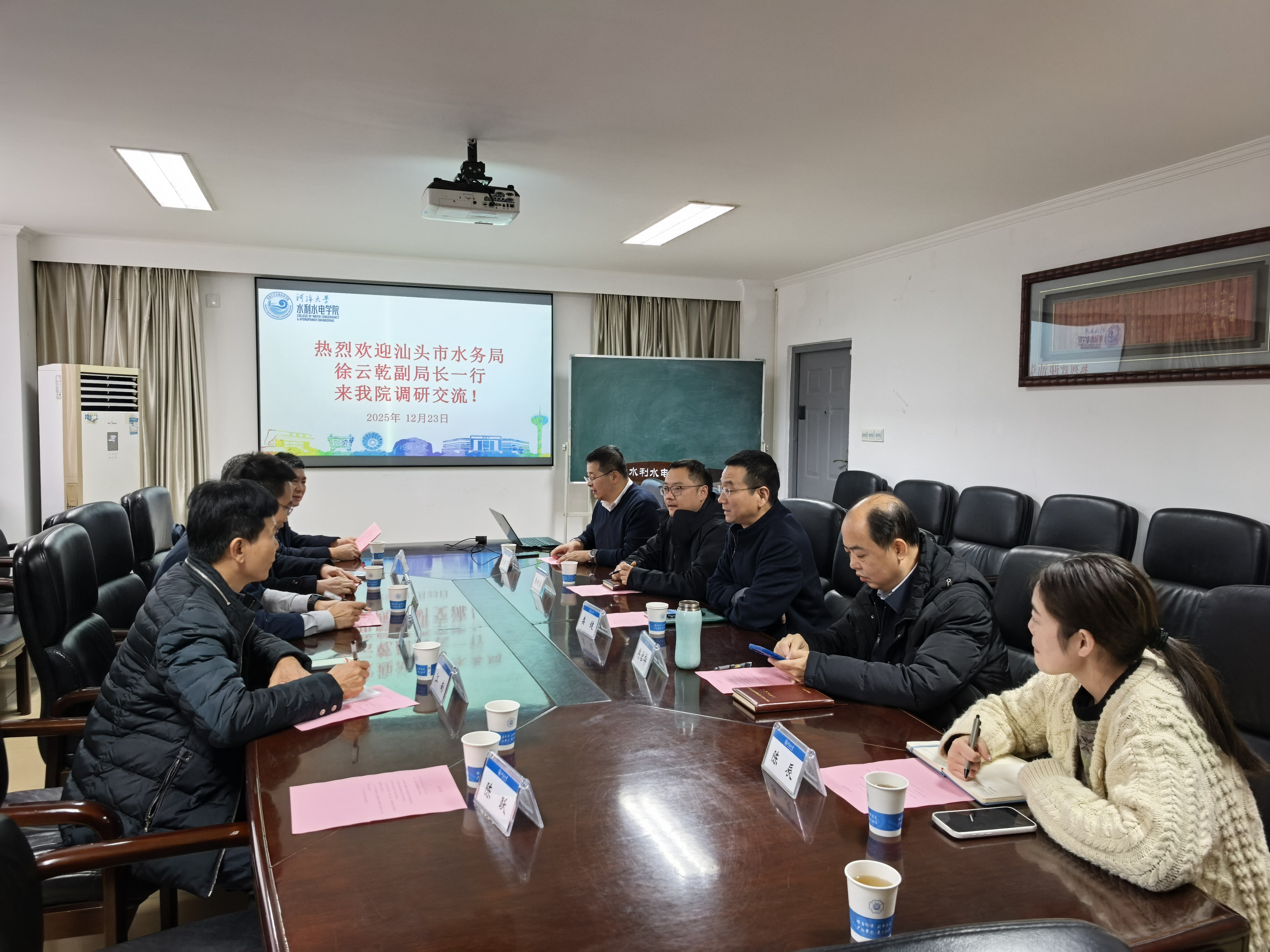 12月23日下午,汕头市水务局党组成员、副局长徐云乾一行到访av漫画 ,就深化校地合作开展交流座谈。汕头市水务局二级调研员韩映民、三级调研员江南、市水利学会理事长张介炳、水旱灾害防御科副科长陈跃,av漫画 党委书记娄健、副院长冉启华、俞晓东,教授包腾飞,辅导员陈辰等参加座谈。