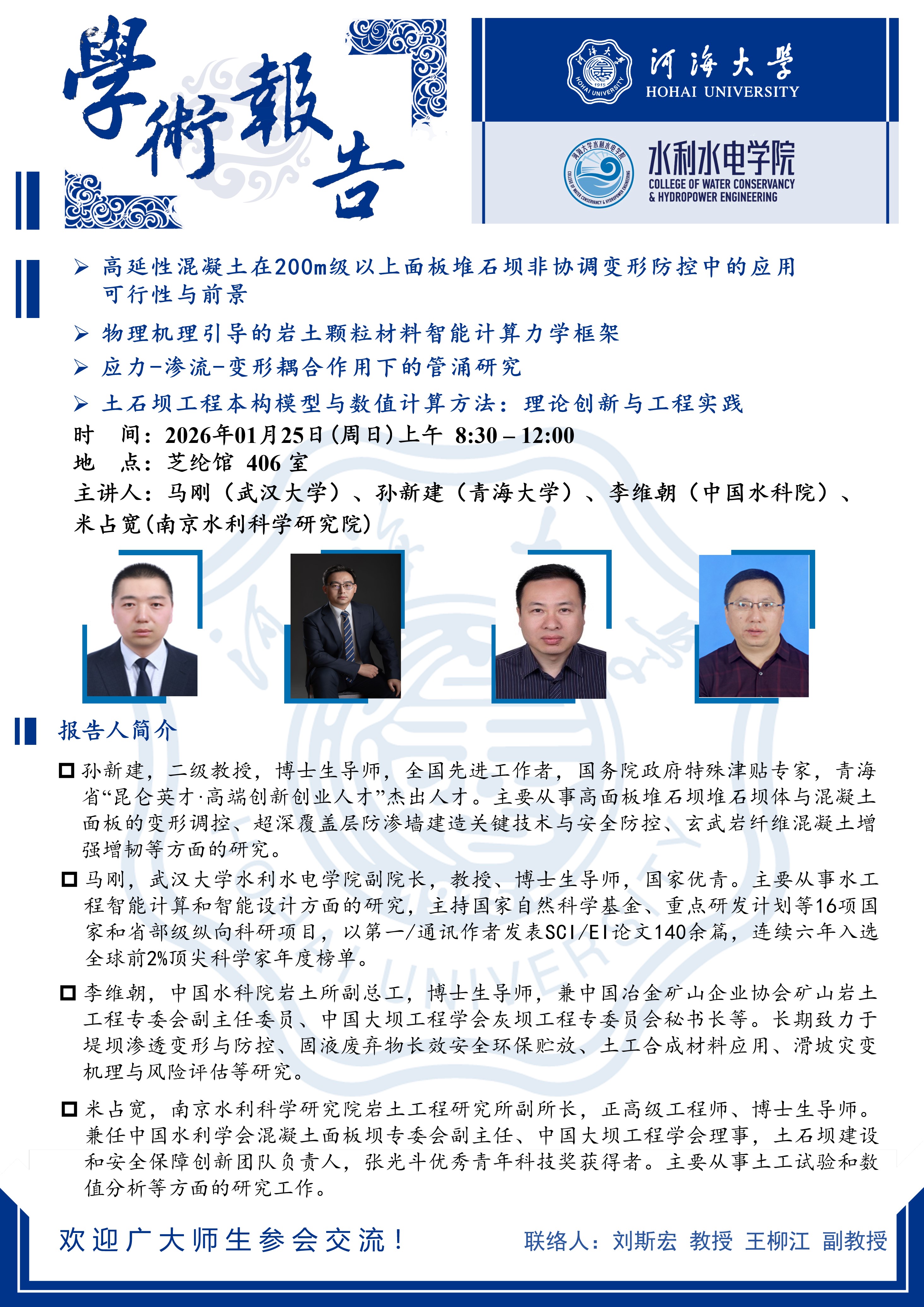 学术讲座 | 土石坝理论与技术创新前沿系列讲座