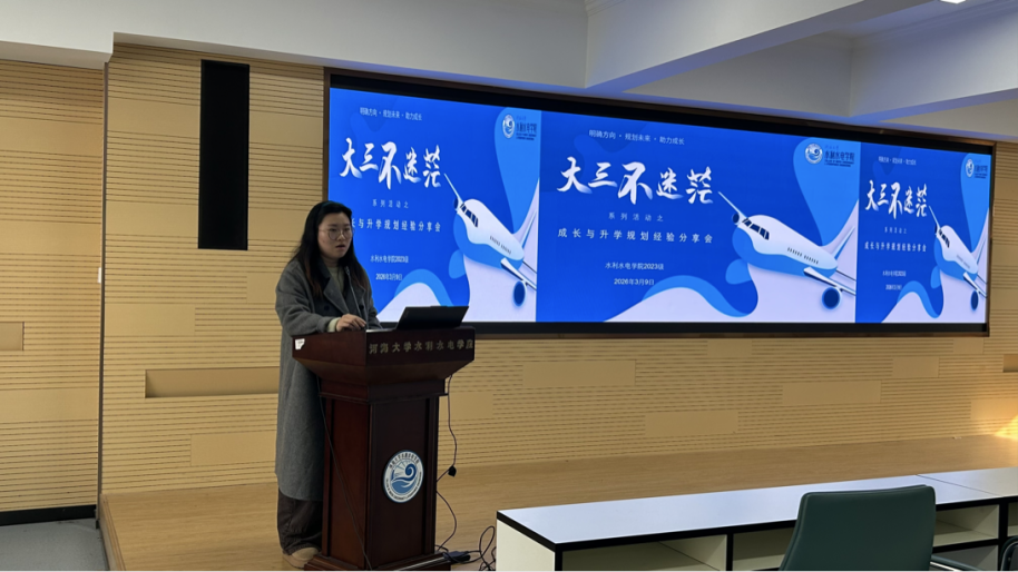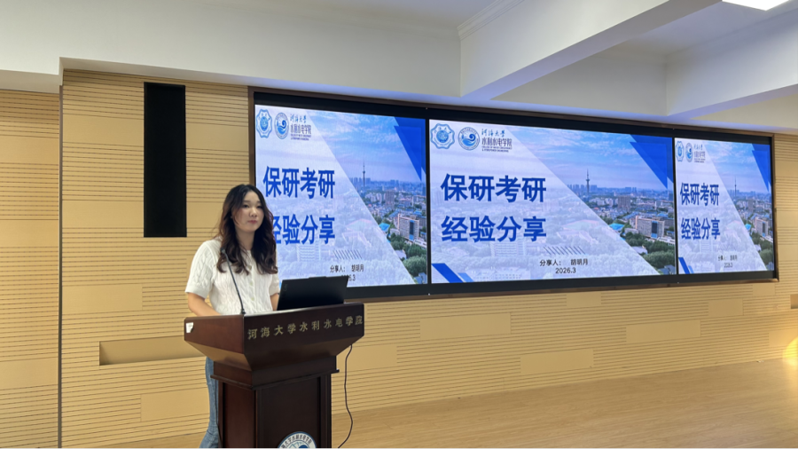 分享会上,胡明月结合自身从保研边缘到考研成功上岸的奋斗历程,从保研准备、心态调整、考研备考等方面以朋辈视角为同学们带来干货满满的升学规划指导。她回顾了自己同时筹备保研与考研的备考经历,提出“保研、考研两手准备不是两手都抓不住,而是无论哪条路走到最后,你都有能力走下去”的核心观点,为处于升学选择节点的同学们厘清认知、提振信心。她勉励在场同学,专业知识是深造发展的根本,需深耕专业课程,夯实学业基础;同时要注重身心同修,主动培养自律意识与抗压能力,锤炼良好心态,在面对学业挫折时及时调整状态,努力成长为专业扎实、心态稳定、行动力强的新时代水利学子。
