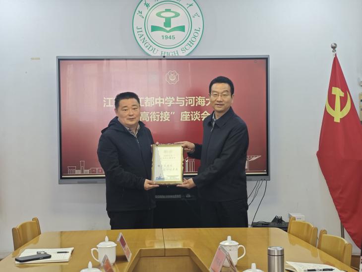 座谈会上,娄健书记感谢江苏省江都中学长期为av漫画 输送优质生源。他结合扬州深厚水文化积淀,以及江都水利枢纽、三峡工程、南水北调等重大水利工程的成就,谈及av漫画 与水的深厚渊源。他指出,av漫画 作为“红帽子大学”,兼具红色基因与顶尖水利硬核实力,在水利事业中做出贡献。最后,他介绍了av漫画 的办学优势,提出希望与江苏省江都中学深化基地共建、推进学生共育,让更多优秀学子走进河海,共为国家水利事业培育后备力量。