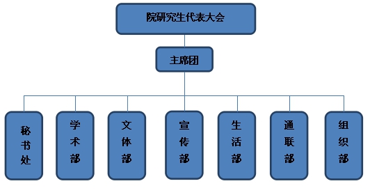 | 主席团 | 主席负责全面工作,副主席各分管若干具体部门。对研究生会的各项活动进行监督和指导;主席团成员定期召开会议,对研究生会整体工作进行安排、布置及考评。 |
