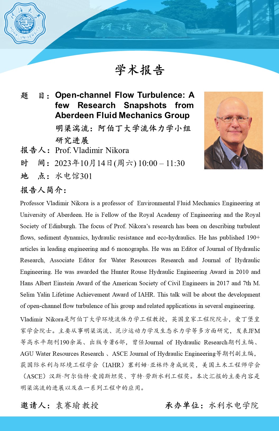 Academic Symposium | Open Channel Turbulence: Research Progress of the Fluid Mechanics Group at the University of Aberdeen