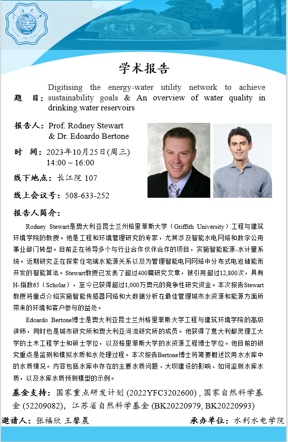Academic Report Conference | Digital Energy Water Utility Network to Achieve Sustainable Development Goals&Overview of Drinking Water Reservoir Quality