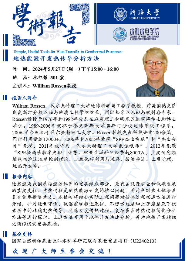 Academic Report Conference | Heat Transfer Analysis Methods for Geothermal Energy Development (Professor William Rossen, Delft University of Technology, the Netherlands)