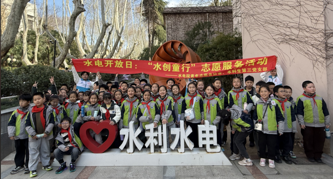 On March 18th, on the occasion of World Water Day and China Water Week, the Youth Volunteer Association of our college, together with the Third Party Branch of undergraduate students, launched the Red Charm Inheritance, Intelligent Water Future water conservancy technology and red culture exploration tour at the Xikang Road campus. The core concept of the activity is red genes forge the soul, water conservancy technology empowers. Through immersive learning and interactive practice, more than 40 children from the Mechanics Elementary School are led to trace back a hundred years of water control and national service history, and explore the power of modern water conservancy technology.