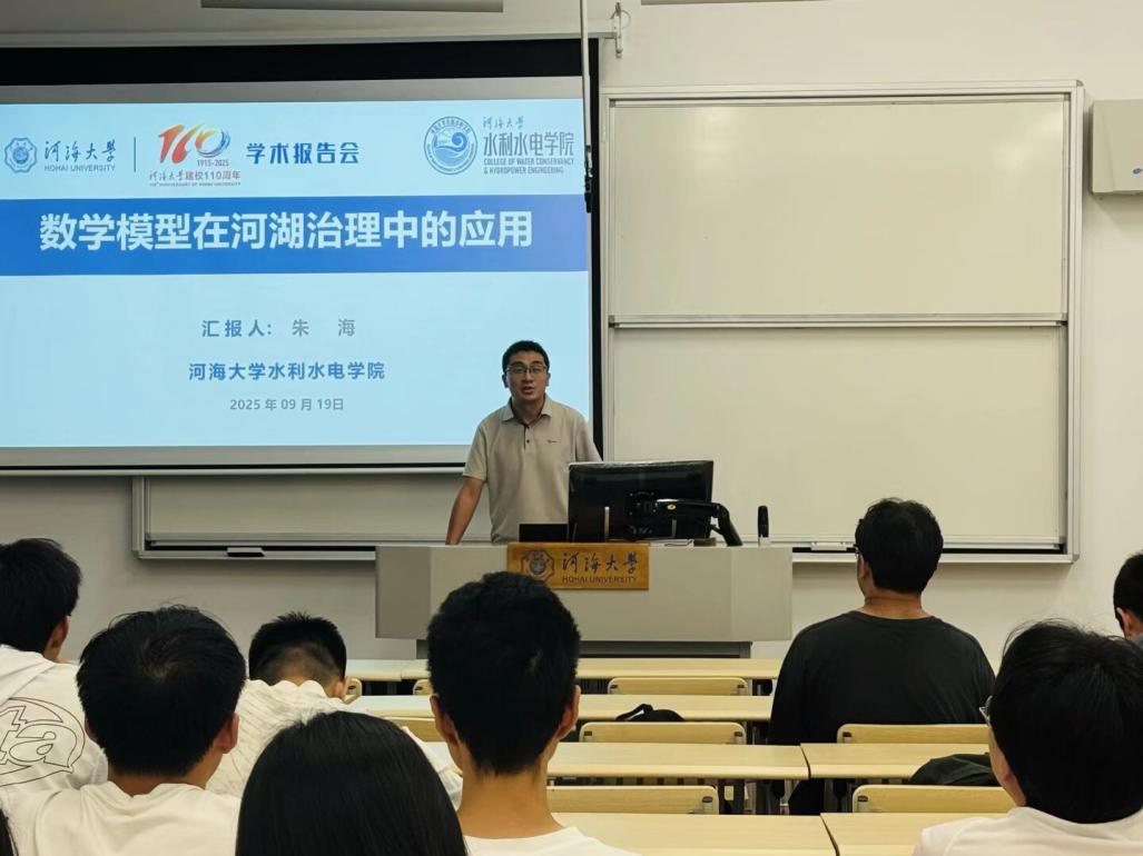 On September 19th, Associate Professor Zhu Hai from our university gave a lecture titled Application of Mathematical Models in River and Lake Management at B111, Block B, Building 2, Changzhou Campus. Undergraduate students from our university in 2024 attended the lecture.